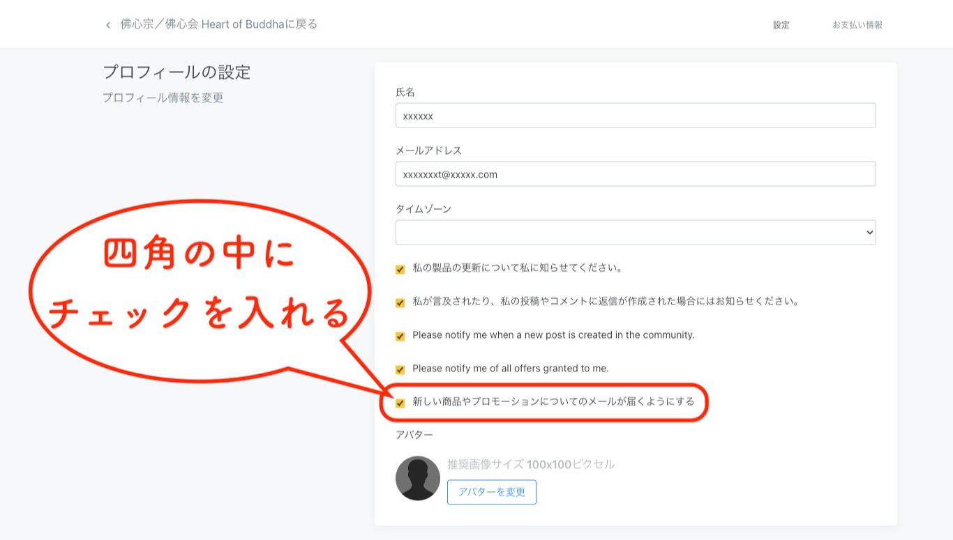 「新しい商品やプロモーションについてのメールが届くようにする」にチェックを入れます。